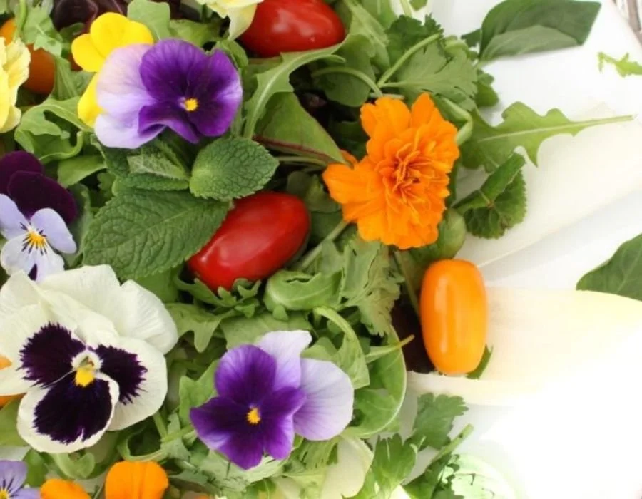 The marigolds botanical name are tagetes & they have a delicate flavour, but at the same time make a beautiful colourful garnish, really adding the wow factor. Along with the pansy which is botanically known as viola tricolour & has a lettuce like flavour.